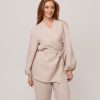 100% kivipestud linasest valmistatud valge hõlmikpluus on loodud naisele, kes hindab loomulikku elegantsi ja rahulikku luksust. Pehme, hingav ja õrnalt tekstuurne kangas loob pingevaba, ent