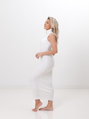 Teddy Studio x Gerta koosloomes sündinud lõige, mis liigub naise eluga kaasa, kohandub tema kehaga ja kallistab teda igas eluetapis. Kleit sobib imeliselt nii beebiootuse ajal kui ka mitterasedana. Midi pikkuses lõige, mis ühendab elegantsi ja mugavuse. Kleit on kõrge kraega ja istub kehasse pehmelt. Ilma varrukateta lõige võimaldab kleiti kombineerida näiteks kampsuni või kardiganiga, luues kleidist ideaalse kapselgarderoobi rõivaeseme.
